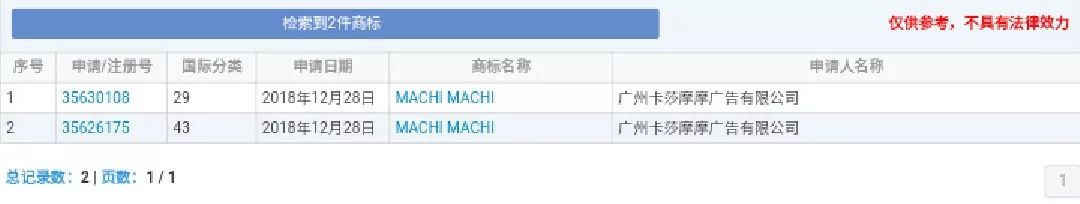首先是machi machi麦吉奶茶,网友们说这是周杰伦最喜欢的奶茶店。商标网显示已被广州一家公司申请了29、43类商标,并且第43类已经初审公告。具体的商标注册请看下列图: